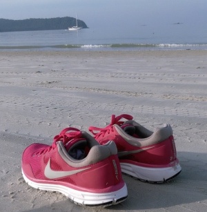 я взяла с собой в отпуск кроссовки и бегаю тут рано утром вдоль кромки моря.