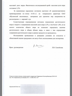если уж и штрафовать директора, то уж никак ни за 0,7 % жира неустановленного происхождения.