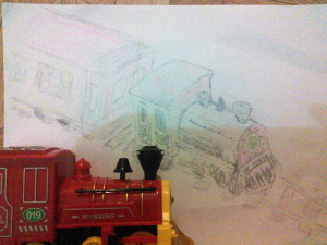 Всем доброго вечера. Мы с дочерью нарисовали паровоз с вагончиком. На как нарисовали срисовали с игрушечного от железной дороги. Ребёнка была в восторге от того, как из коробочек потихоньку вырисовывается паровоз совсем как настоящий.