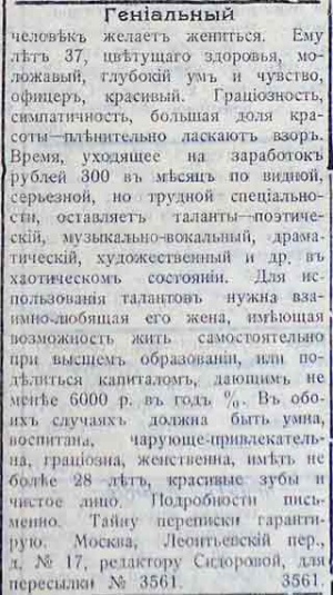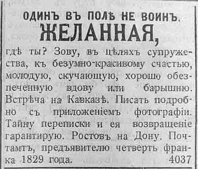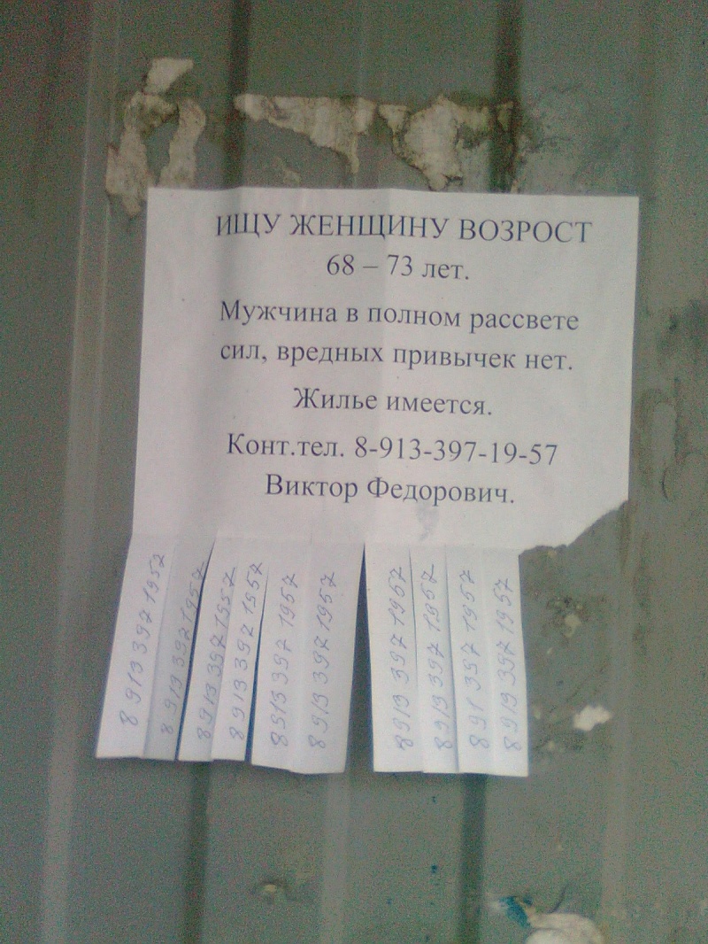 Буду постить объявления, которые можно читать как "Войну и мир" или хотя бы как "Отелло"