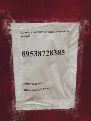 Хотите сказать, что это из той же серии что и надписи на гаражах "сосу бесплатно маша <номер телефона>"?