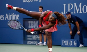 Ну сама Серена кричит не меньше. Правда эйсов у неё больше, да и попадает чаще в площадку из тех позиций, откуда вроде бы уже недостать. В первом сете игра шла равная.