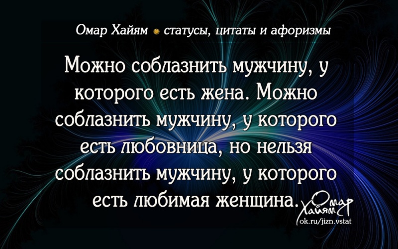 можно соблазнить мужчину у которого есть жена, можно соблазнить мужчину у которого есть любовница, но нельзя соблазнить мужчину у которого есть любимая женщина (о.хайям)