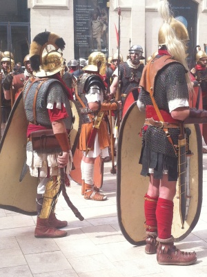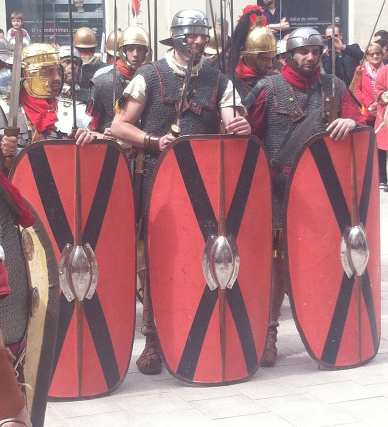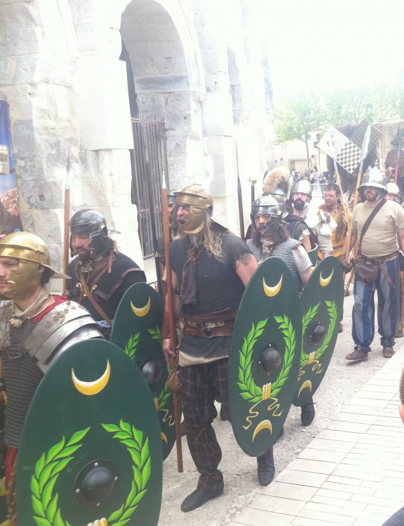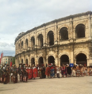 Сейчас здесь, в Ниме проходит шоу Большие римские игры. В программе спектакль-реконструкция в Аренах (так тут называют римский Колизей), ярмарка аутентичных старинных товаров, проходы местных жителей и актеров театра в костюмах римских легионеров и горожан, бои гладиаторов, гонки на колесницах, построения легионеров знаменитой "черепахой" и демонстрация других строевых маневров и быстрых перестроений.