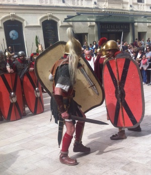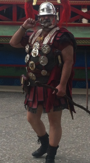 Вобщем образы римских легионеров мне понравились, вот только штанцы там торчат из под лат, если не ошибаюсь - римские воины не носили даже нижнее белье, не то что капри)). А штаны считали признаком варвара. Последний витринный образ - только изумление, так странно)) Но я старуха, прошлый век.