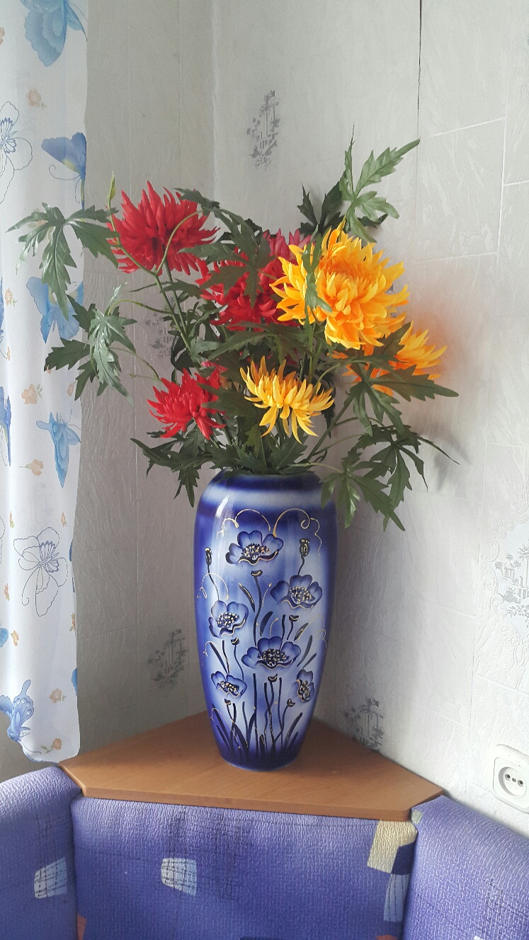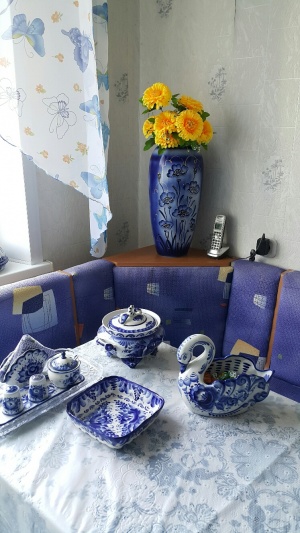 Сменила цветы в гжельной вазе.
