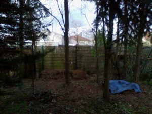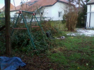 А вот до этого угла у меня руки ещё не дошли.. Это участок с ежевикой, которая всё заплела, она имеет огромные колючки, которые оставляют шрамы на коже и потом пятна у меня идут, аллергия такая у меня.