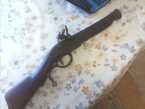 У него ещё ружьё есть..настоящее..В сейфе стоит.