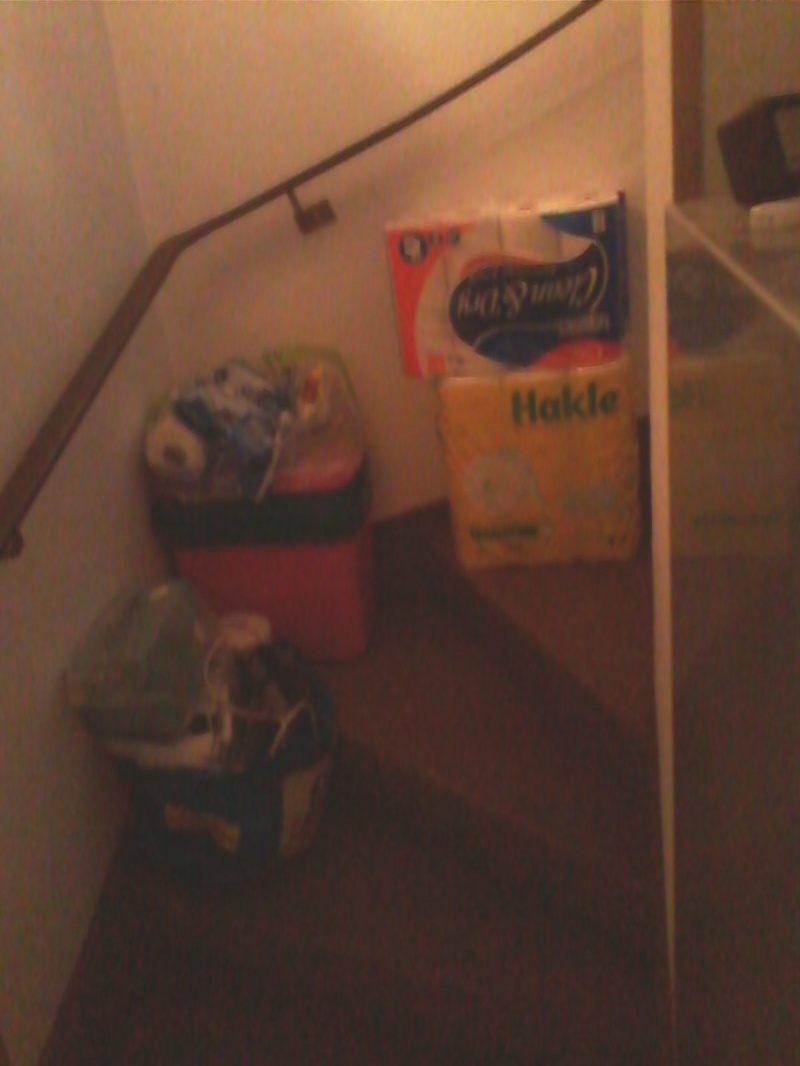 Места для складирования нужных вещей типа туалетной бумаги, бум. полотенец на первом этаже нет. А на втором СРАЧ после отъезда сына. Так НМ приноровился складывать запасы на лестницу !!! Ох батюшки...И слова не скажи.