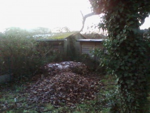 2-3. Вот эти 2 кучи - это компост, который я заложила за лето... (А рядом бесформенная куча листьев, это он мне "помог". Ну я потом уберу....)