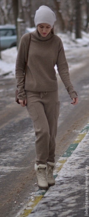 Сейчас тоже мода на вязанный хэнд-мейд. Носят все. Вон брюки-джоггеры вязанные в инсте и на площадках по продаже хэнд-мейда. Что-то захотелось на холодные зимние вечера иметь. Но не знаю, решилась ли бы на выход носить ))) Себя я в таком вижу исключительно зимой в поездке в загородный дом (дачу) на выходные. Сидя у камина)))