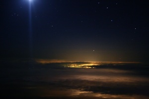 Однажды я летела в полнолуние - это было бесподобно! Лунный свет в зеркале озер и рек, пушистые покрывала облаков и Moon river в наушках.:) Истинное наслаждение.