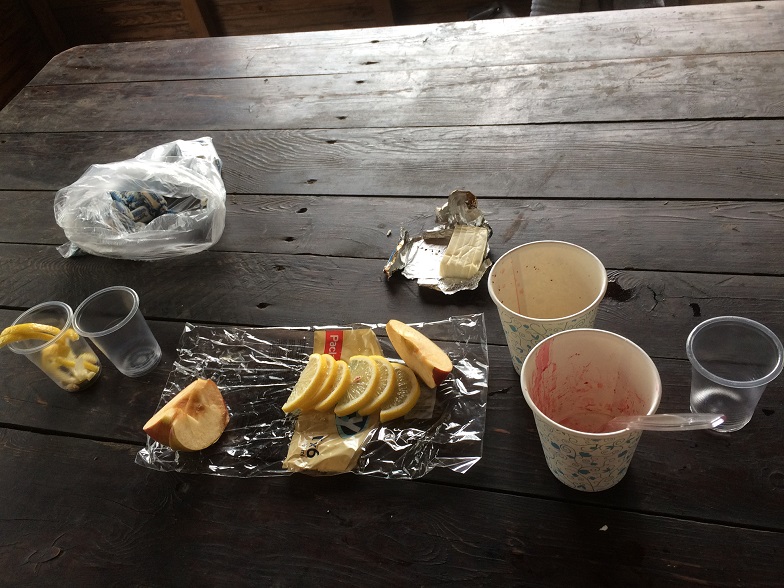 Я приехала. Беседка пустая, но оставлено яблоко, хлеб, сыр.