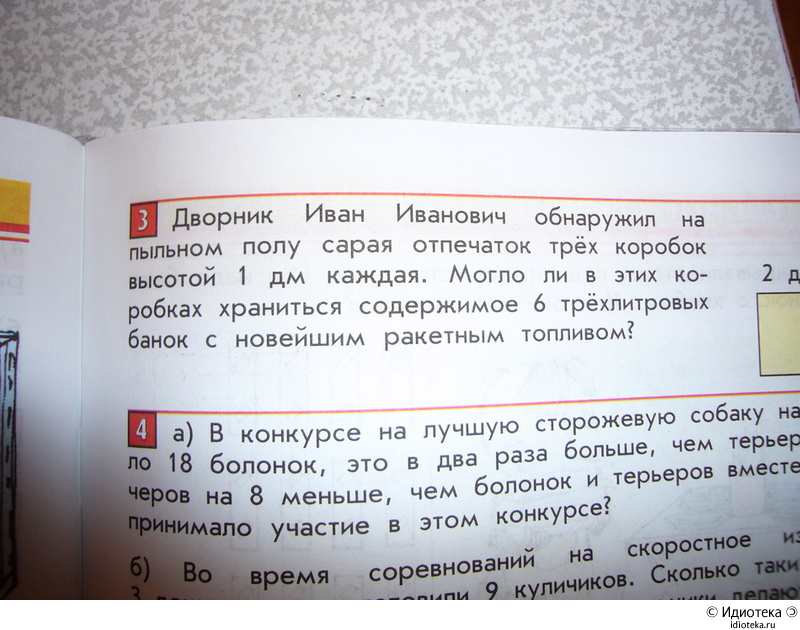 Задача некорректная. По отпечаткам на полу дворник не мог узнать высоту коробок. А если высота неизвестна, то и объем вычислить нельзя. Дураки какие-то.