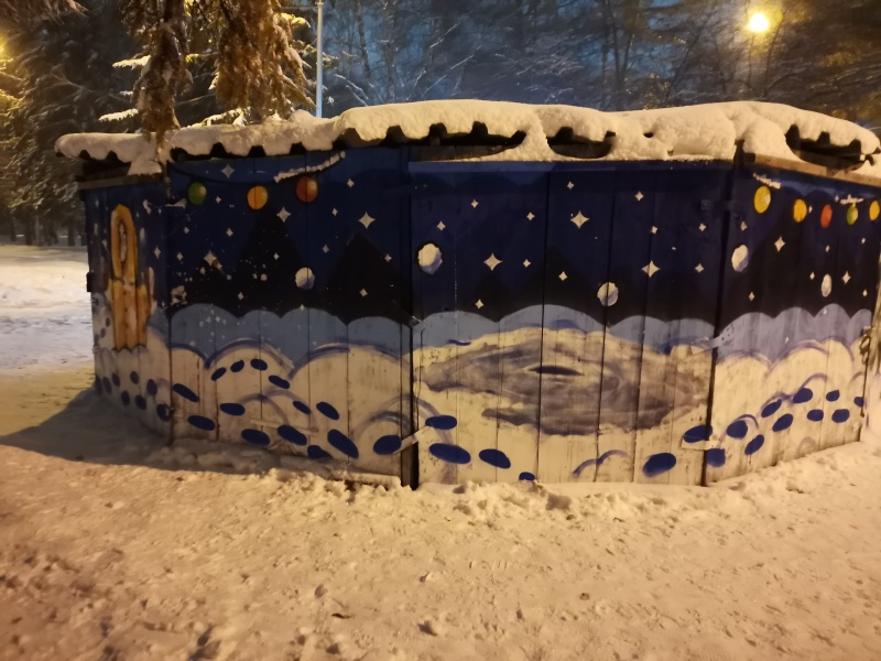 Начала накатывать снежная зима и художник, автор граффити, Константин Киселев взялся бескорыстно за дело.