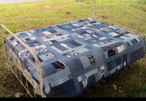 А что там за покрывало? У меня лежит пачка джинсов сына, протёртых строго в одном месте. Выбросить жалко, деть некуда. ))