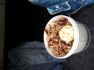 А вот наша добыча : ) Грибов очень много, но без дождей им явно неклиматит: целыми семейными пнями вяленые. Молоденьких море. Если дотянут до дождей, будет вообще огнище