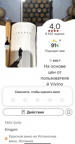 А у меня сегодня Кингпин, Испания, полусухое) в быстрике 900р. по акции.