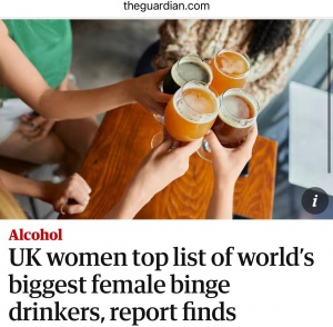 Британки возглавили список самых злоупотребляющих алкоголем женщин в мире. В рейтинге по пьянству участвовали 33 страны. По данным OECD, 26% опрошенных британок выпивают как минимум шесть порций алкоголя за один прием хотя бы раз в месяц.