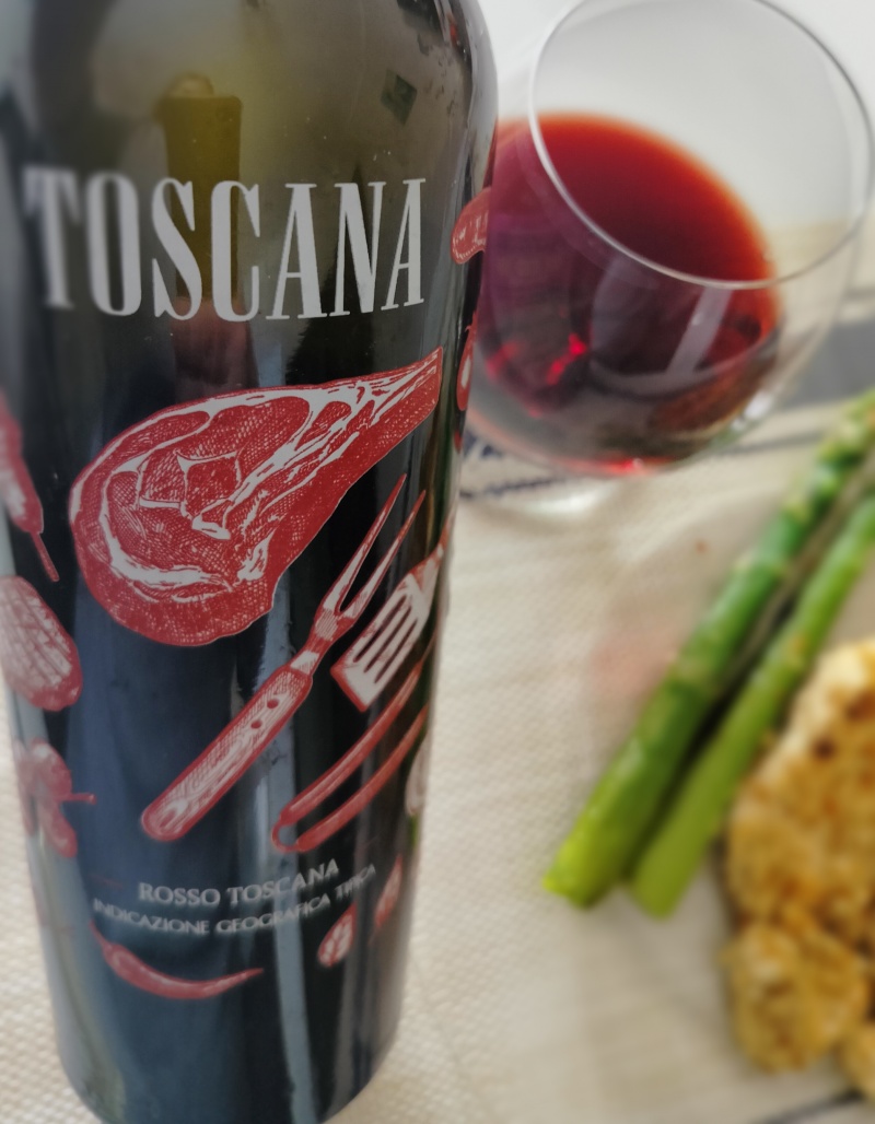 Супер бюджетная по скидке Тоскана из Быстронома. В аромате черные ягоды. Высокая кислотность (для меня). Пойдет с мясной парой, соло тяжело.