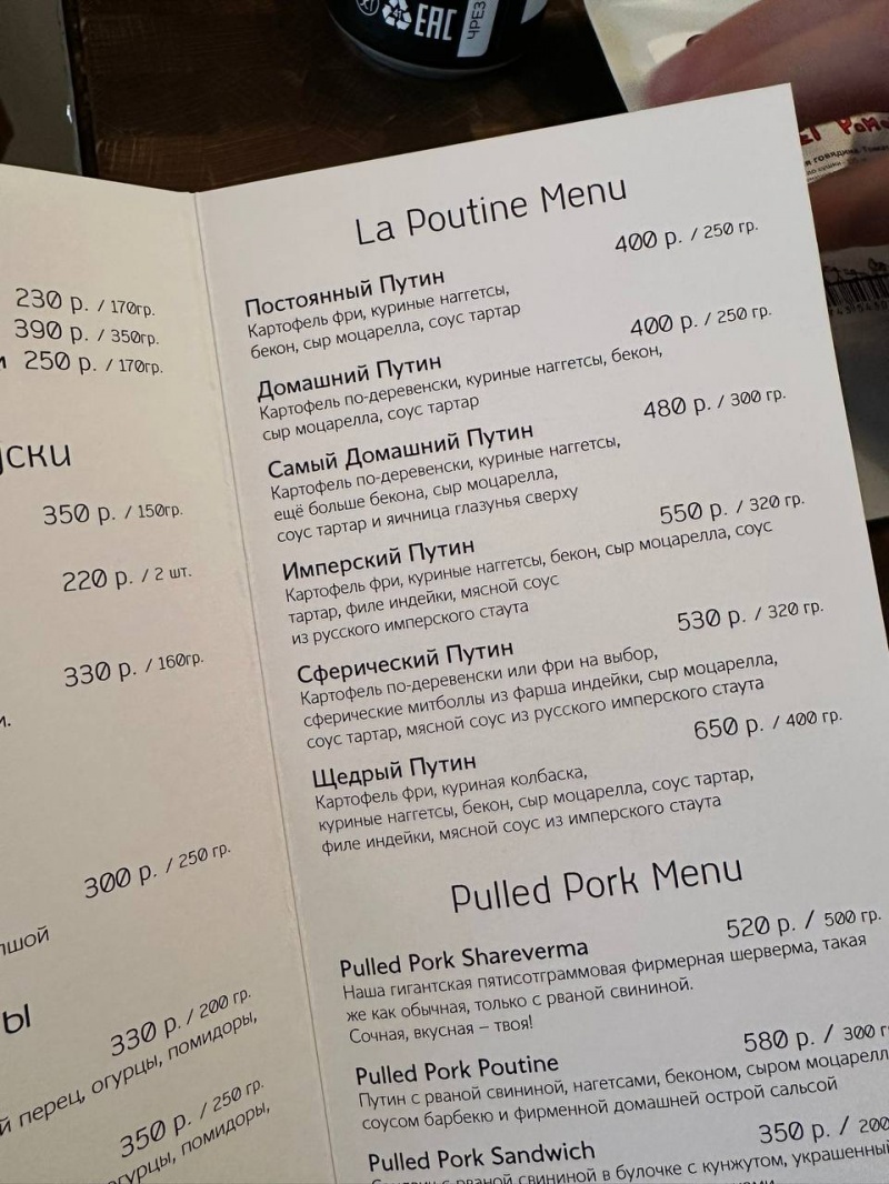 В шашлычной на Маяковской подают блюда, названия которых выбраны в честь Владимира Владимировича. В меню есть: