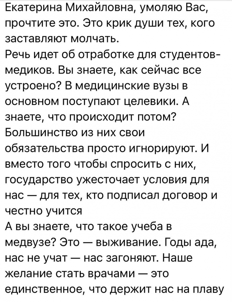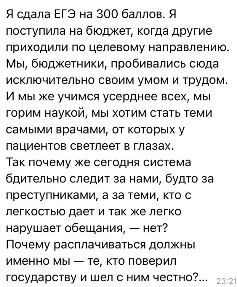 кто пошёл туда по фануВчера Госдума приняла в первом чтении законопроект об обязательных целевых договорах для студентов-медиков, обучающихся на бюджете. После того, как новость появилась в СМИ, стали приходить от студентов вот такие письма. Публикую как есть. Таких писем много, еще покажу (с)