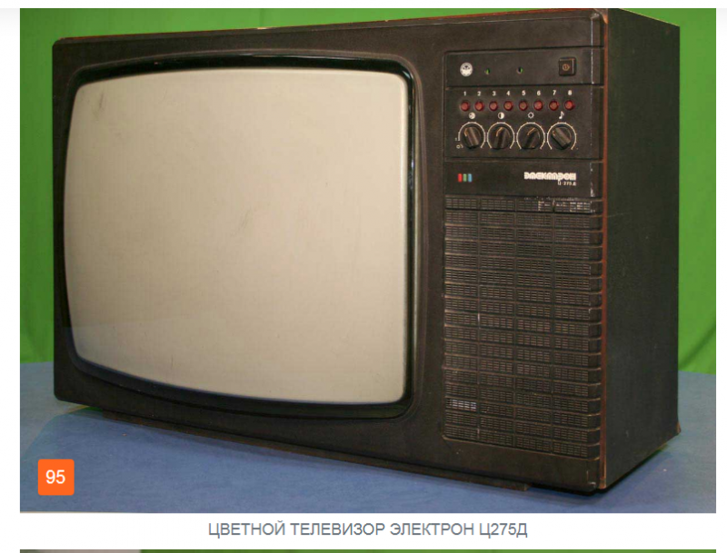 Отче, я точно помню, что свой первый цветной телевизор "Изумруд какой-то там" покупал в 89 или 90-м за 700 с копейками рублей исключительно по талону. Талоны распределялись среди семейных студентов. Микроволновок рядом с ним в торговом центре точно не стояло.У нас на смену первому телевизору "Рубин-106", купленному в 1968 пришел ЦВЕТНОЙ ТЕЛЕВИЗОР ЭЛЕКТРОН Ц275Д году наверное в 1983-84.