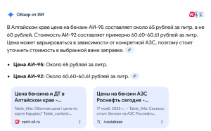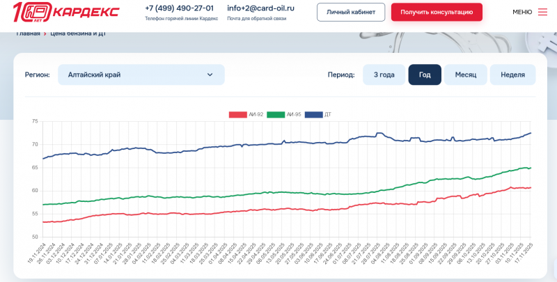 В Алтайском крае цена на бензин АИ-95 составляет около 65 рублей за литр, а не 60 рублей