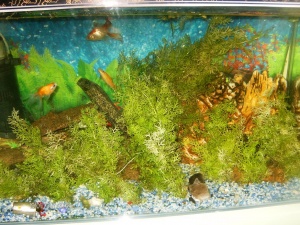 Где фотка обещанная?к аквариуму не прикосались с того времени как у тебя папоротник взяли, такшто грязненький немного....