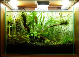 К примеру вот мой с более чем скромным светом около 100 ватт (люминесцентного света) на 120 литров.КАК КРАСИВО-О-ООО! а свет вы делали сами?