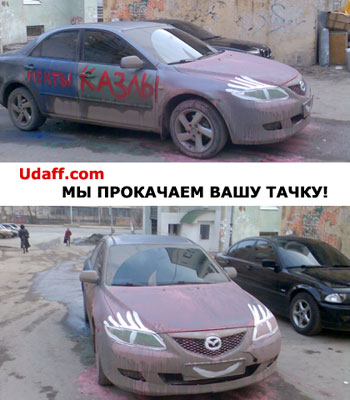хаааа это моя идея:)когда было совсе совсем грязно...и машина от грязи стала уже даже белой..я прорисовала на ней две полоски ...и она целый день была гоночной:))