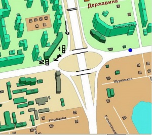 1. Кольцо на Башне. Выезд на Сибиряков-Гвардейцев. Заезд со стороны Блюхера и Кристалла (безсветофорные въезды).