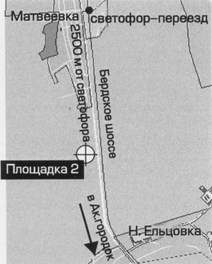 Расстояние от светофора «Матвеевка» до базы примерно 2,5 км.