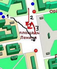 на пл Ленина время от времени пересекаются поток машин, поворачивающий с Вокзальной направо на Красный (1 на рисунке) с потоками (2) и (3) идущими с Красного на ул. Ленина.