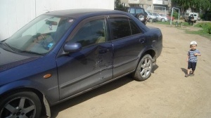 Машину всегда ставлю на стоянку, а вчера устал очень и дернул меня чёрт оставить её на улице, рядом с подъездом. В час ночи брелок сигнализации начинает дико орать, я почти в трусах выбегаю на улицу и вижу свою покореженную машинку. По свидельствам очевидцев пъяное мурло на белой Волге 3110 гос номер 327 буков не успели разглядеть, на скорости задним ходом влетел мне в бок, тут же ударил по газам и скрылся в ночи...----------------------------------------------------------