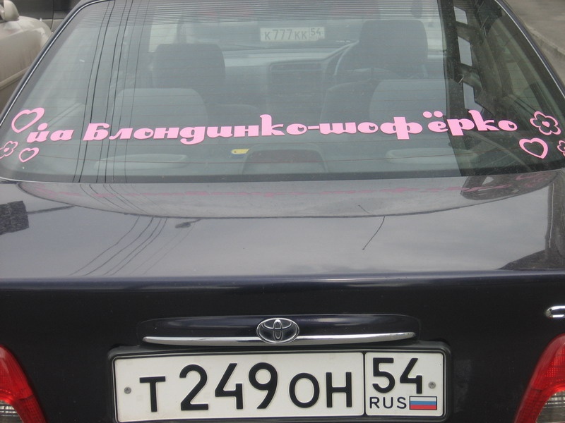 Самое идиотское, что видел, это на заднем стекле розовоог витца "наращивание ногтей, телефон бла-бла-бла"