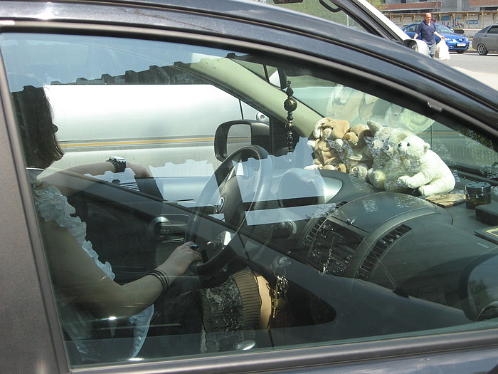 это её собственность, может хоть коня на крышу посадить и котатьНа крыше может и коня катать, наверное, а вот игрушек за лобовиком - нет:![]()