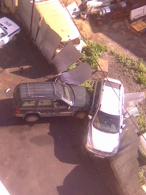 нда...мой свекр работает в здании рядом...охранник все рассказал......Забор упал, но, повезло, не задел рядом стоявшие машины.