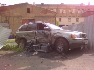 Присматриваюсь, а это бьют новенький Volvo XC90 в хлам. Рядом с Джипом бегает охранник (у нас территория дома охраняемая) и просит девушку прекратить, а девушка вновь и вновь сдает назад, разгоняется и бьет по Volvo и орет, что ей пох.й... Потом у нее потек радиатор, машина задымилась и вовремя подоспевший сосед, открыл дверь с ее стороны, которая оказалась не заблокированной и выдернул девушку.