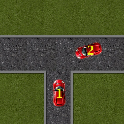Но таки машине 2 пропускать надо машину 1.