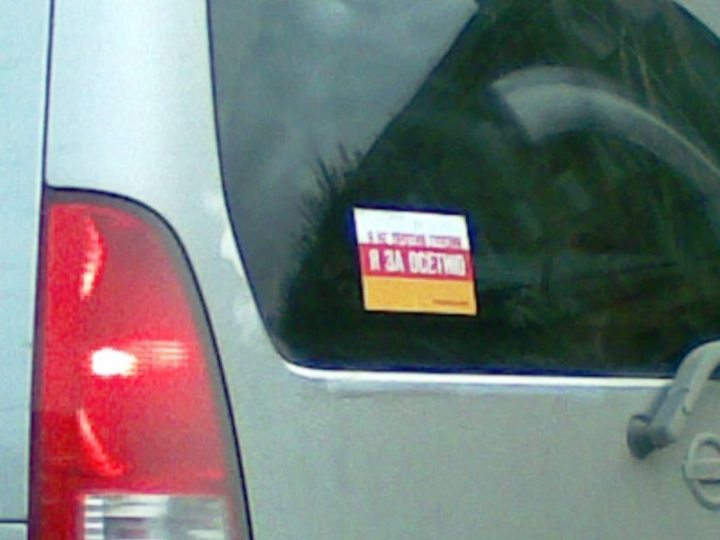 пол часа назад видел автомобиль из 98 региона с такой овт наклейкой. за качество извините, снимал на ходу. надпись на наклейке: я не против грузии. я за осетию.