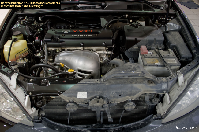 посмотрите как mr.cap отмывает моторный отсек. реально как новый. стоит в районе 1 рубля. http://www.mrcap.com.ua/img/clients/12_b.jpgдеалется это так .... береться жидкость - пенка для двигла, удаления масел и т.д., полироль для пластика ... тряпочка, губка ... керхер (шланг с водой, ведро) часа 2-3 свободного времени хорошая погода и вытирается-моется ручками с усердием, вот только зачем? если только на продажу?
