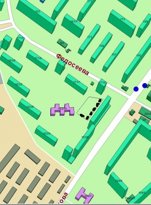 собственно, двор выделен. типа машинки нарисованы - их умещается штук 15-20. Свободная территория, не занятая машинами - качели, песочницы и т.д.