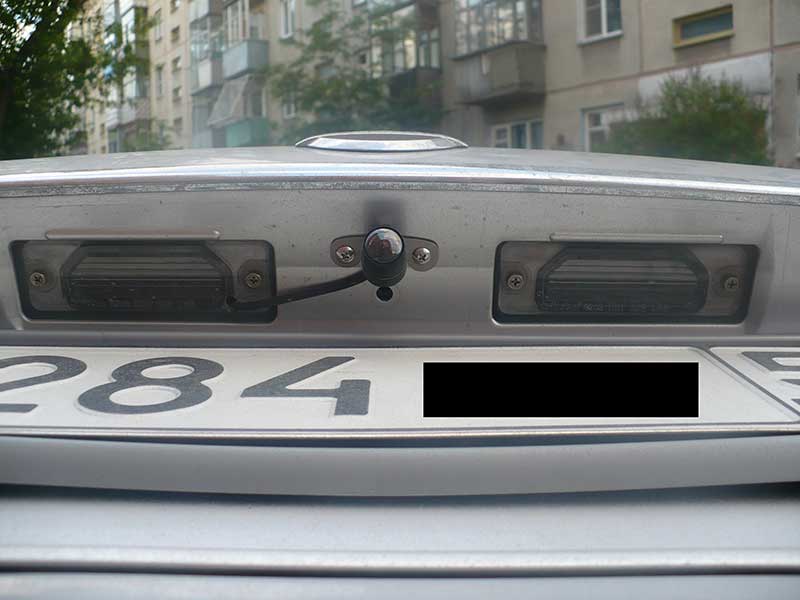 2) Я сколхозил - вытащил штатный фонарь подсветки номера (всё равно был не подключен, т.к. подсветка на рамке), убрал лампу и рассеиватель и прикрутил камеру прямо в фонарь.