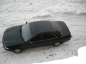 А еще на днях тут на машину мешок с мусором упал. Так промял крышу и стекло выбил тоже. Вот откуда такие идиоты берутся а?