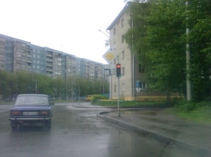 Аналогично с тем светофором на Маркса, получается, что если я въехал с Маркса, или с Ватутина (со стороны пьяной), на "разрешающий сигнал светофора" - то я имею право проехать тот светофор на "красный", а с любых других мест - нет, не логично же? Потому вопрос спорный