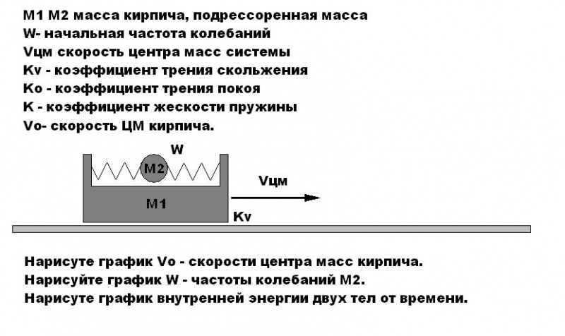 Наверное стоит немного априори заложить о соотношении масс. Если кирпич-это авто, а m2-это водитель, то тогда пружинки имхо не там нарисованны,