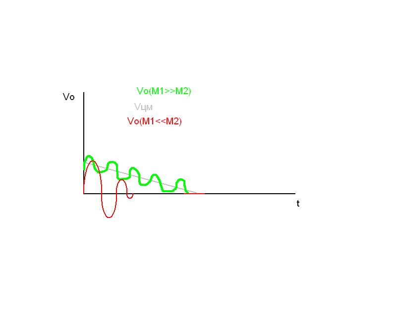 1. рисуем график до момента остановки m1 (V1=0).