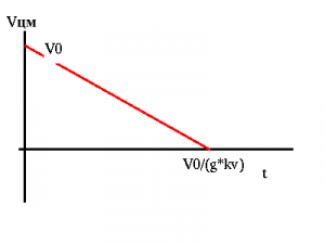 Моммент остановки m1: t0=V0/(g*kv)