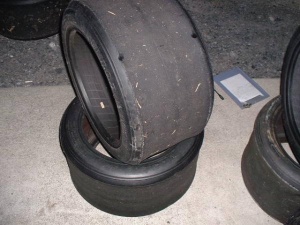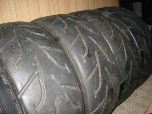 когда выбирал машину - глядел марка ИР-С, у него спереди чууть-чуть виднелись следы протектора, а задняя резина - реальные слики ))))) чуть ли не до дыр протертые ))) так что можно
